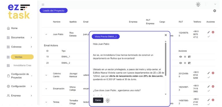 - Automatización: Nunca más un correo sin enviar, ni lead sin contactar. Delega la responsabilidad a ez task, para que tus correos siempre se envien a tiempo.